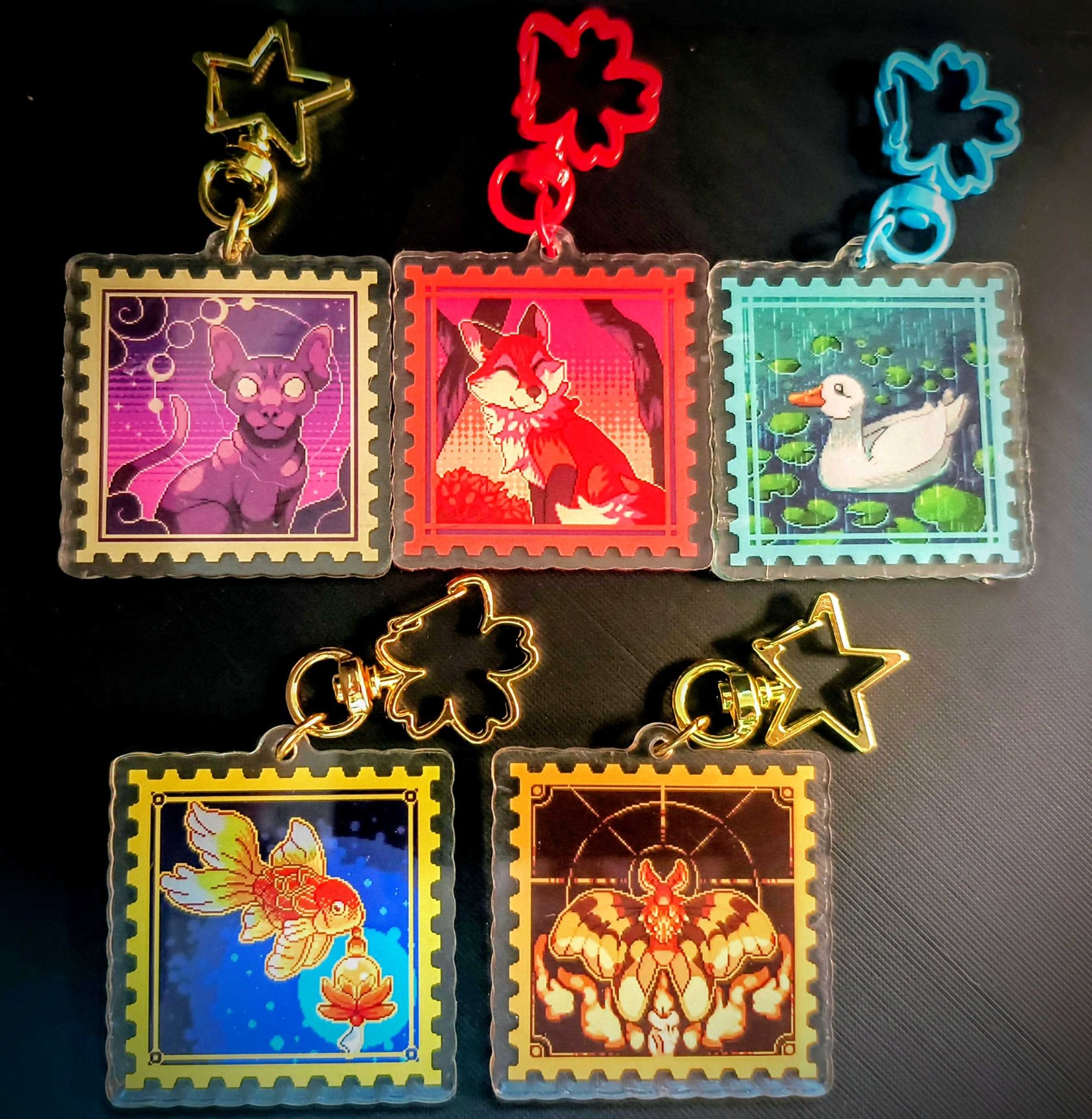 2" Inch Double Sided Acrylic Charm of different animals in a pixel art style.