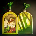 Original Pixel artwork of a fox and Kitsune on two different Double sided layered charms.