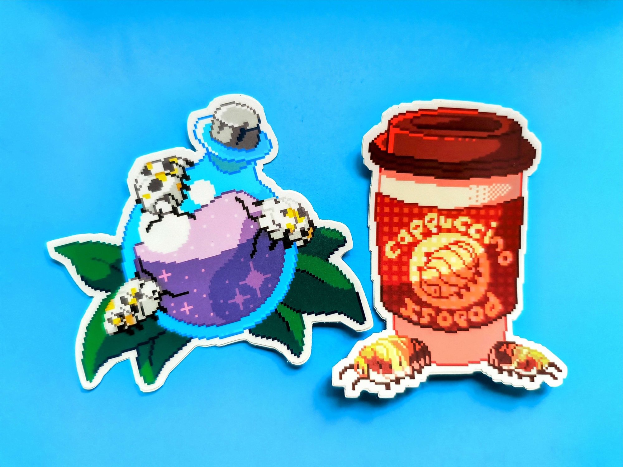 Around 3"Inch, Super Matte, Die cut, and Weather proof stickers of isopods in a pixel art style.