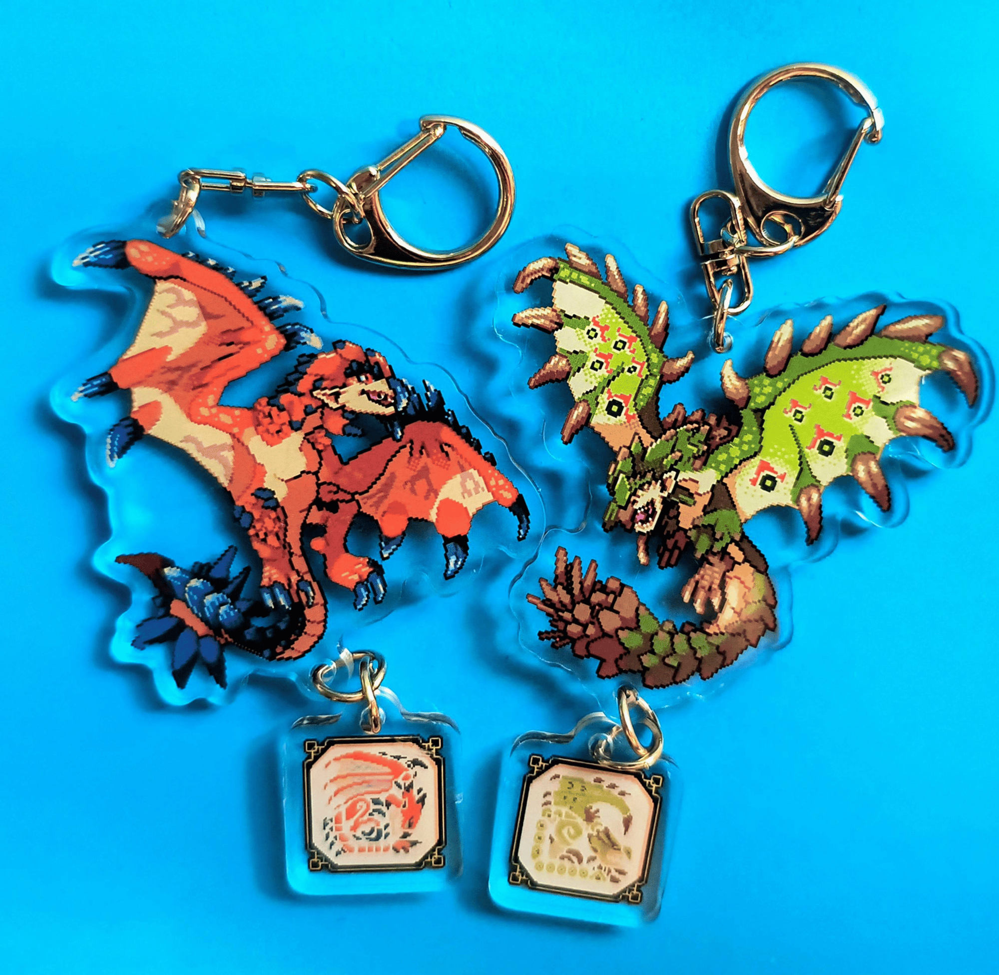 2.5" Inch Double Sided Connected Clear Acrylic Charm of the Monster Hunter Characters Rathalos and Rathian
